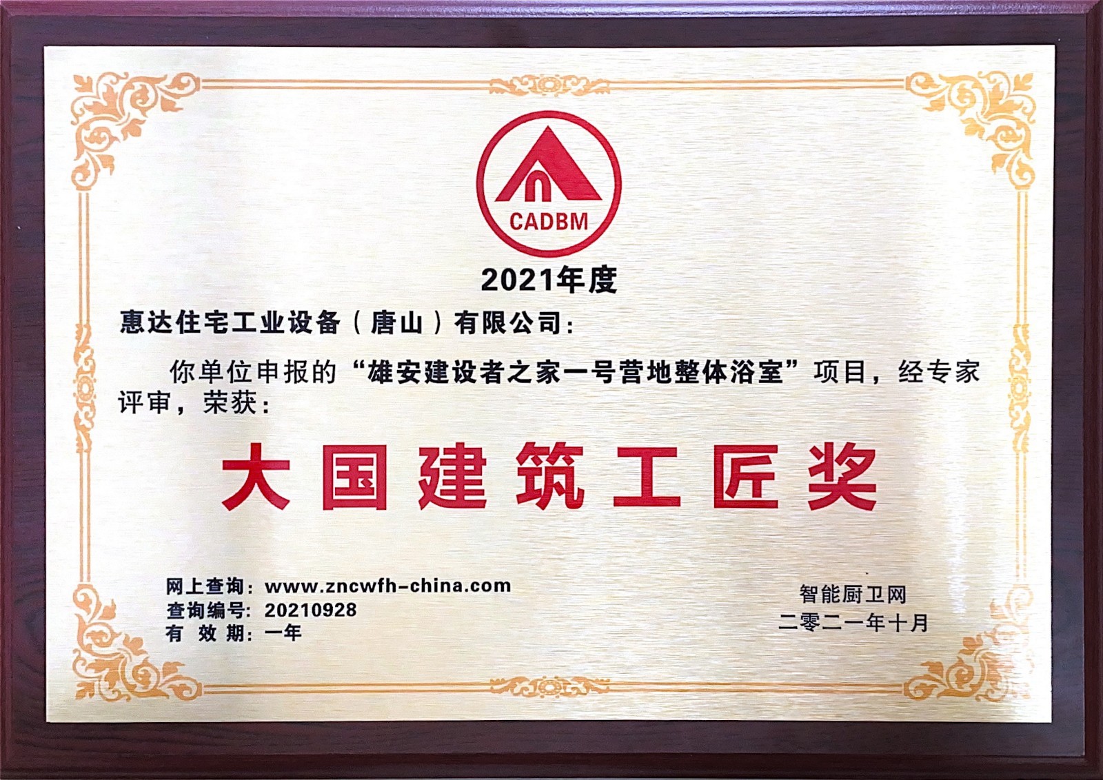 近期,惠達(dá)住工參加了由中國(guó)建筑裝飾裝修材料協(xié)會(huì)智能廚衛(wèi)分會(huì)主辦的“中國(guó)建筑工匠獎(jiǎng)”評(píng)選活動(dòng),經(jīng)過(guò)專家層層評(píng)審,惠達(dá)住工憑借“雄安建設(shè)者之家”項(xiàng)目的卓越工程質(zhì)量榮獲“大國(guó)建筑工匠獎(jiǎng)”。